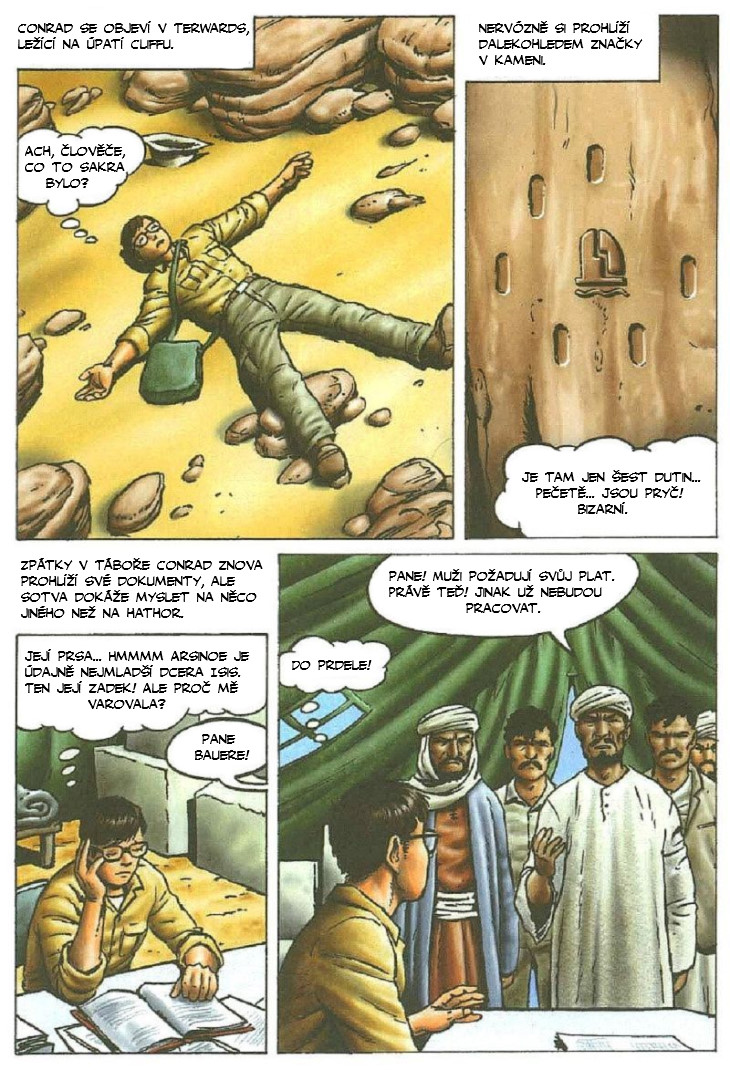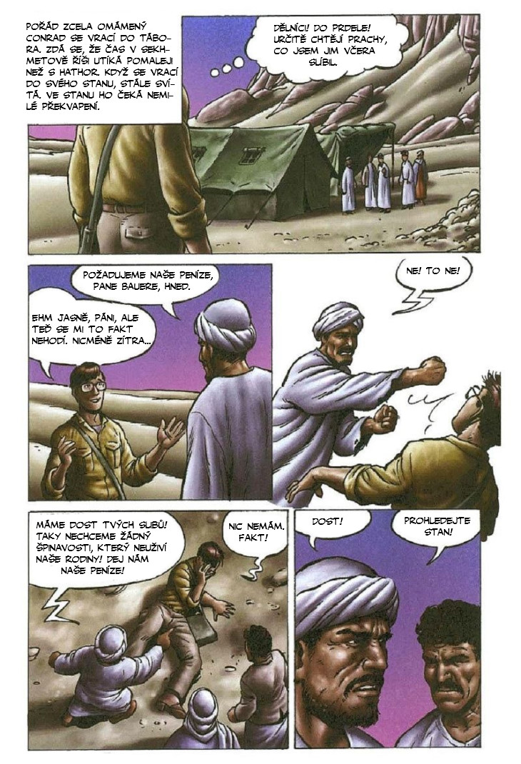 Po návratu od Hathor se Conrad Bauer opět ocitá v táboře. Jeho dělníci chtějí slíbení peníze. Aby se vyhnul problémům, vydá se na průzkum značek v kameni. Najednou se opět ocitá v jeskyni a poznává Sekhmet, bohyni války.