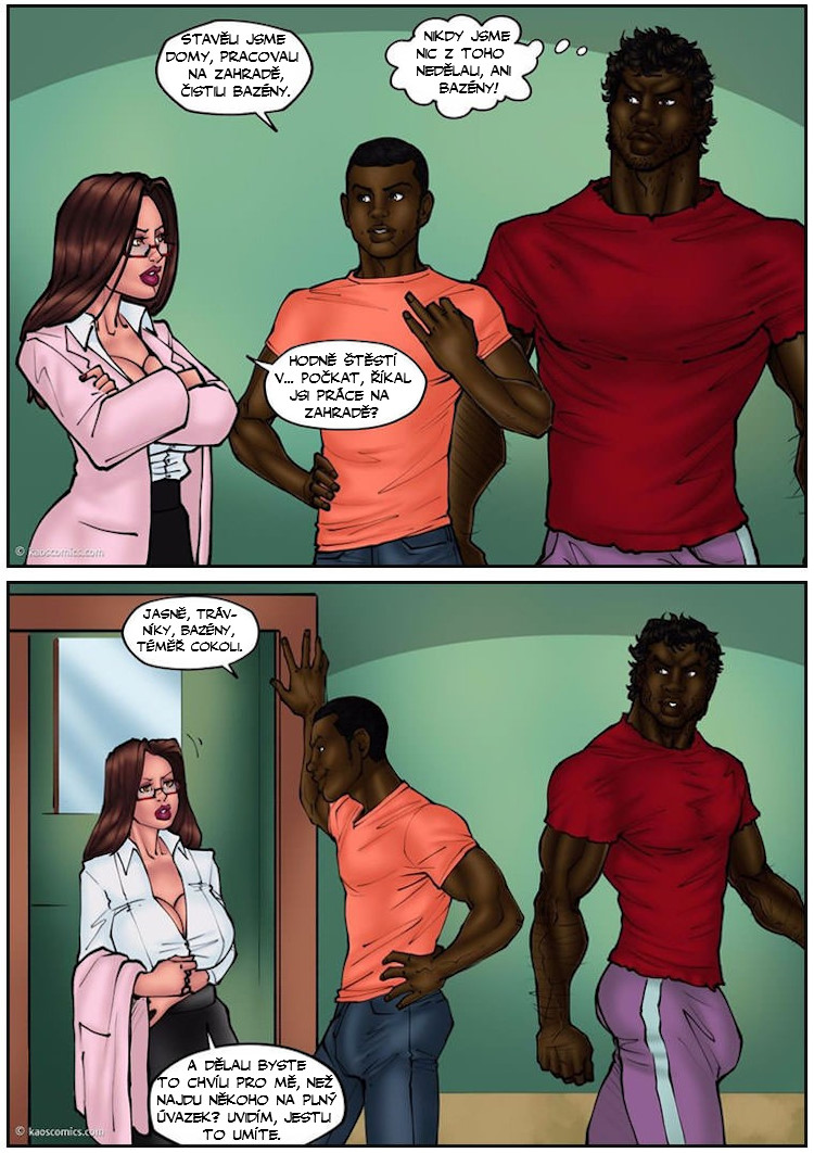 Doktorka má dneska den blbec. Obsluha bazénu i zahradník dali výpověď a manžel ji přemluvil, aby uspořádala prohlídku bezdomovců, protože díky tomu si budou moct udělat daňový odečet. Při prohlídce ji ale upoutají dobře vystavění černoši.