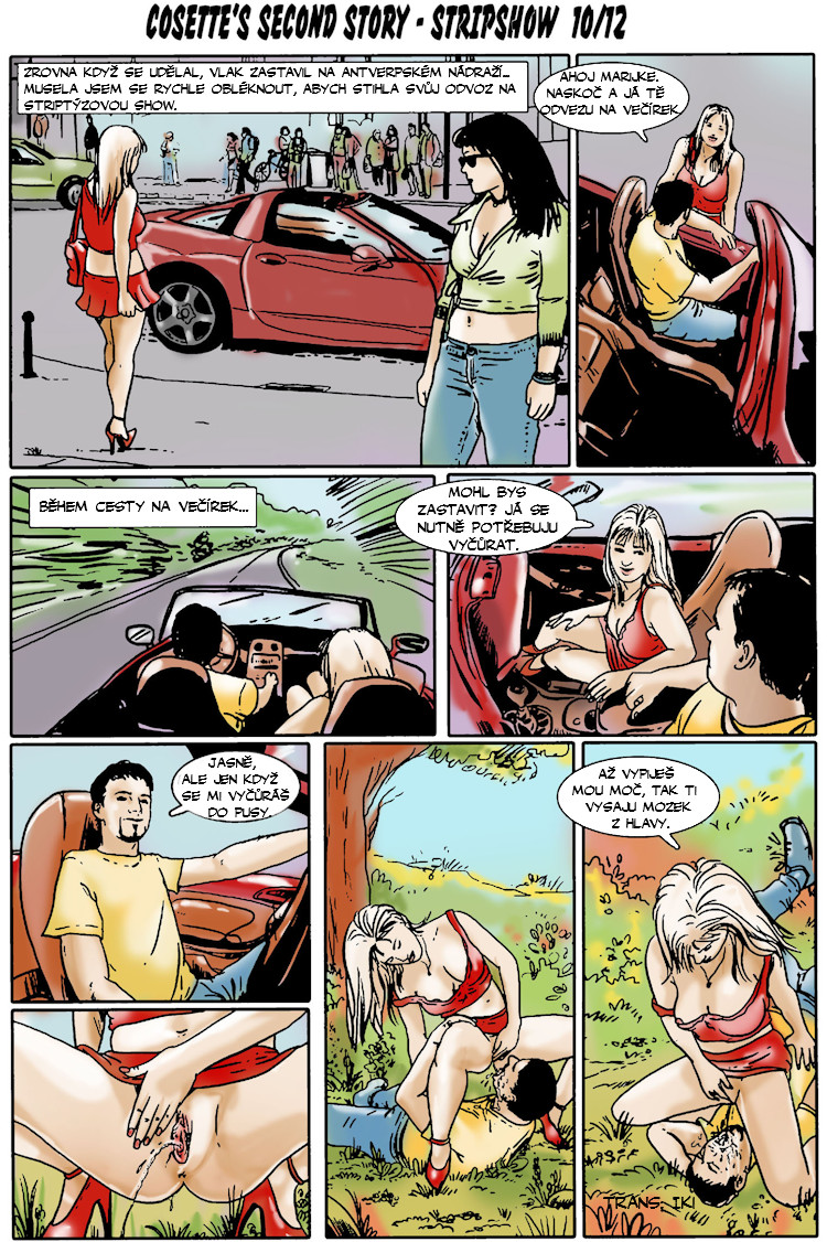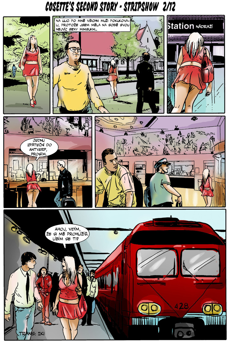Cosetta je ten den šíleně nadržená. Hned ráno dostane objednávku na striptýz v Antverpách. Bohužel má auto v servisu, tak musí vyrazit vlakem. Ale tu svou nadrženost musí cestou osvědčeným způsobem vybít.