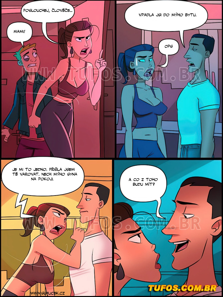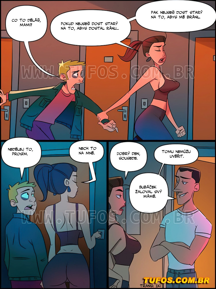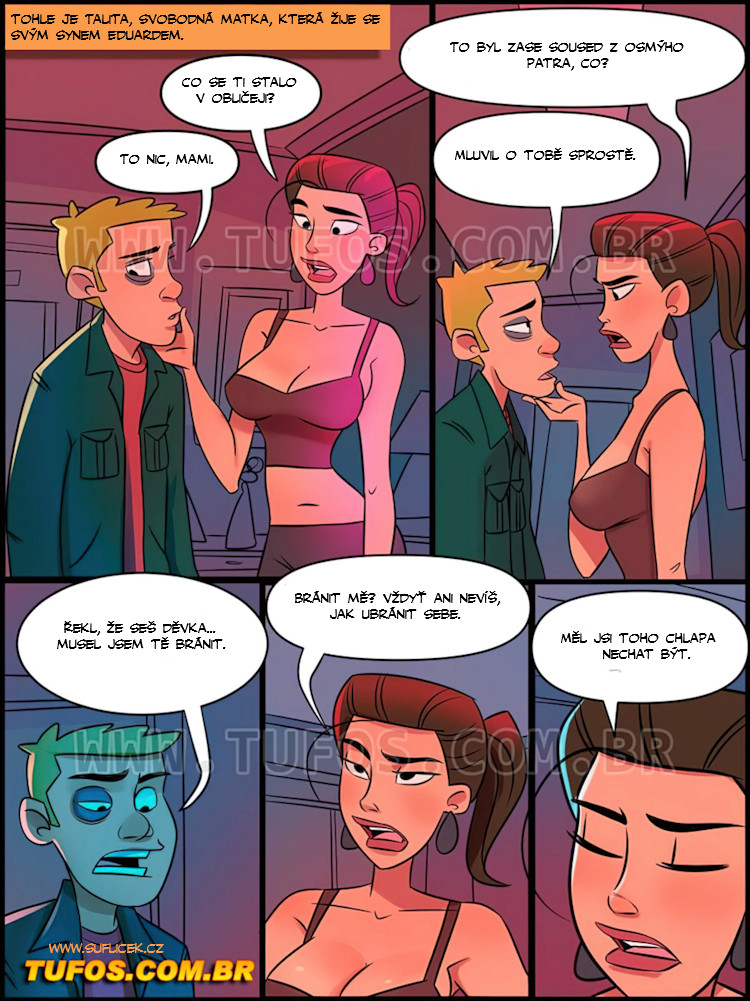 Za svobodnou matkou Talitou přijde její syn Eduard s monoklem pod okem. Prozradí, že mu to udělal jejich soused z osmého patra, který o jeho mámě mluvil sprostě a Eduard se jí zastal.